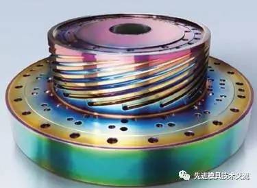 CromaPlus涂層的一大特點(diǎn)在于它豐富多彩的彩虹色。該涂層能夠在模具表面形成一層顏色非常漂亮的覆蓋層。這種色彩豐富的不粘涂層非常適合用于某些粘連性極強(qiáng)的模塑材料,比如橡膠混合物和熱塑性彈性體。在使用這種高硬度的涂層之后,原本因?yàn)殇摪迮c模具表面之間夾雜的硬質(zhì)填充劑所導(dǎo)致的摩擦型磨損,或者因?yàn)殇摪迮c模具這對(duì)金屬間的摩擦副因表面凸凹不平產(chǎn)生機(jī)械咬合而導(dǎo)致的粘著型磨損,得到了大幅度的降低,改善了模具的表面粗糙度,從而降低了表面摩擦系數(shù)。
