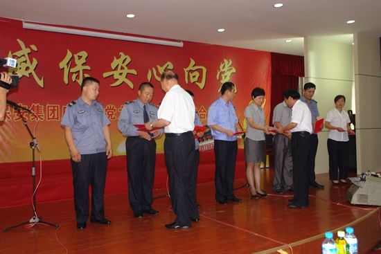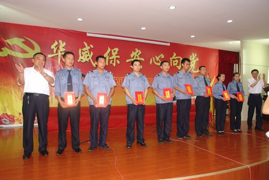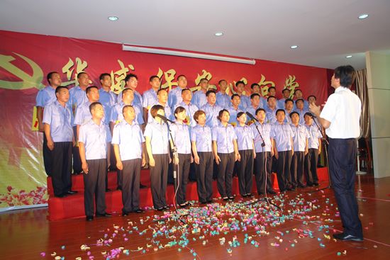 為慶祝中國共產黨成立90周年,展示華威保安奮發向上的精神風貌,振奮精神,鼓舞斗志,7月1日上午,山東華威保安集團隆重舉行了慶祝建黨九十周年暨“華威保安心向黨”唱紅歌比賽活動。曲阜分公司、濟寧分公司、行管、保險公司等8個代表隊近300人參加了比賽。集團公司董事長、總裁荀金慶發表了熱情洋溢的致辭。