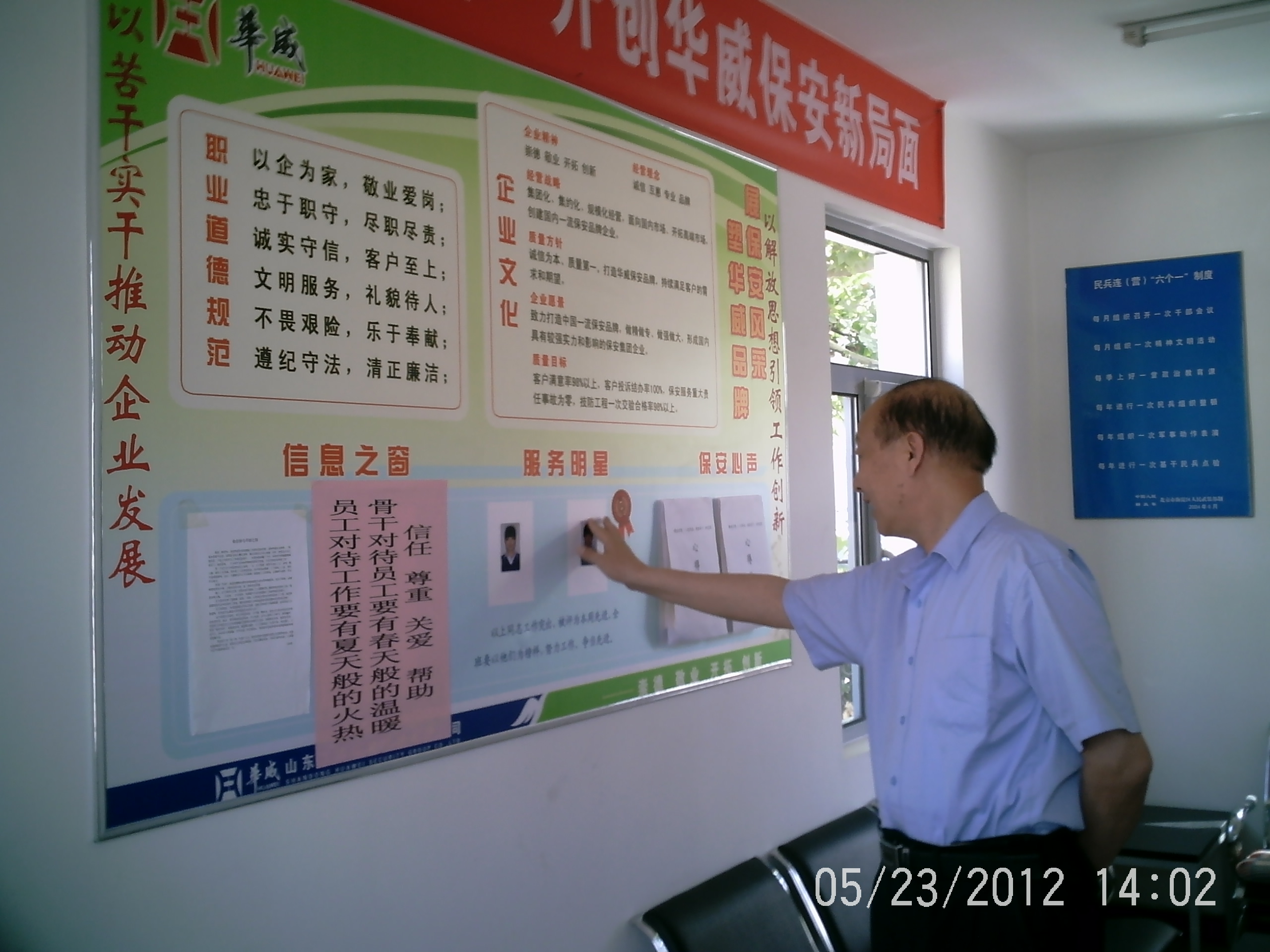 仔細查看企業文化展板