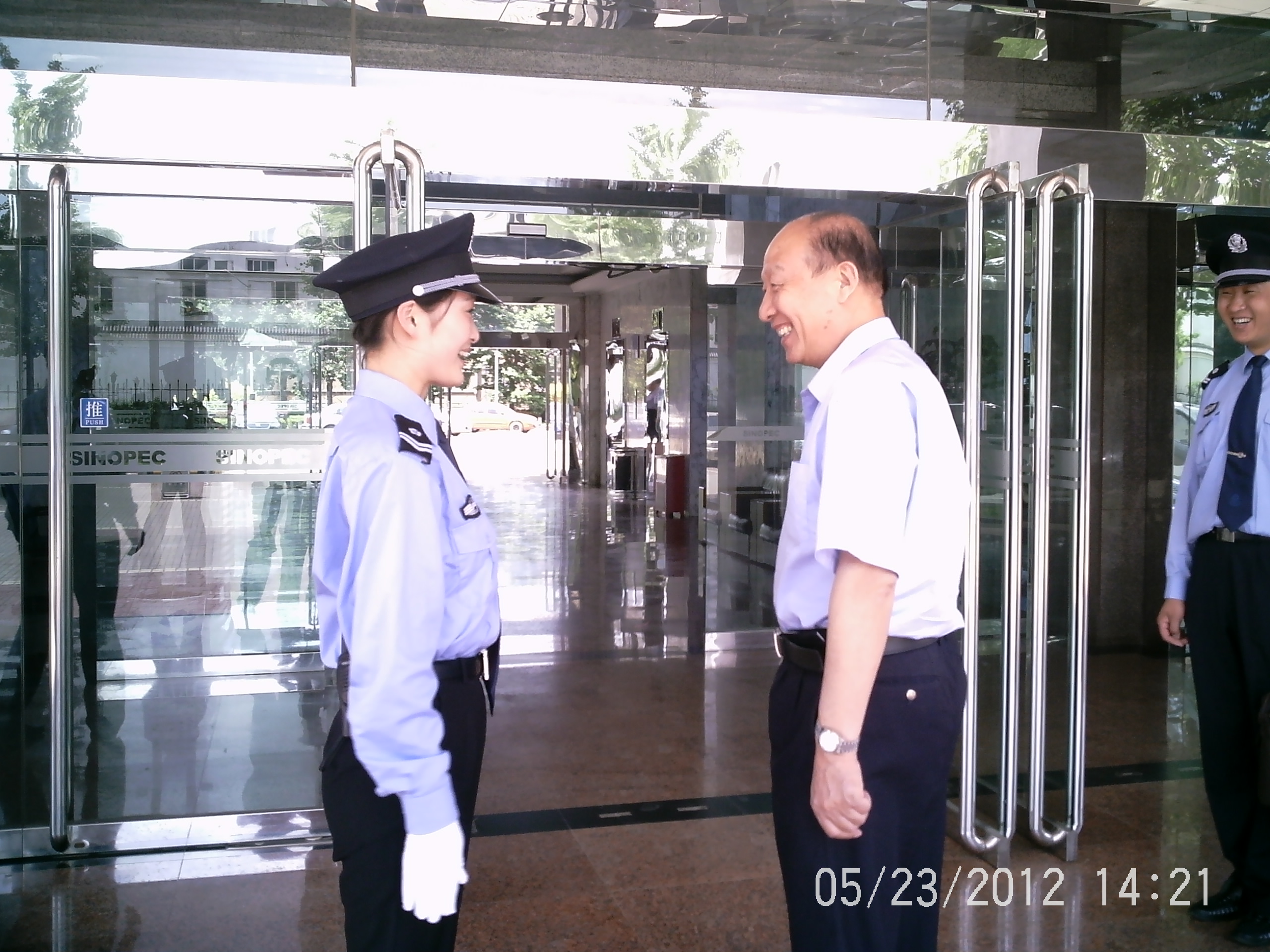 與執勤隊員親切握手
