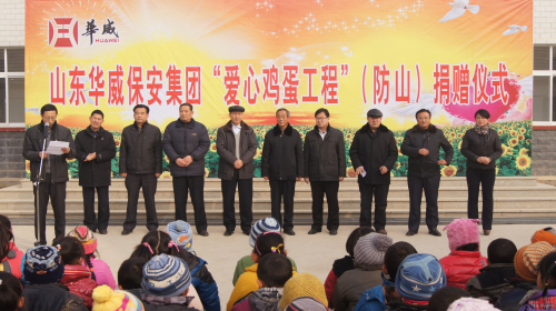 “愛心雞蛋”工程是華威集團董事長、總裁荀金慶與集團首席經濟顧問、著名經濟學家陳湛勻教授共同倡議發起的,是集團公司擔負社會責任,大做慈善事業的系列活動之一。此項工程的啟動,主要是公司員工從工資中主動捐贈來募集愛心基金,旨在使曲阜家鄉一年級兒童每天能吃上一個雞蛋,來呵護孩子健康成長、感受社會關愛、培養明天的希望。“愛心雞蛋”工程自2010年11月啟動以來,得到了公司廣大職工的積極響應,三年來共募集資金10萬余元,為曲阜南辛、吳村、王莊、石門山、防山5個鄉鎮,42所學校2000余名兒童發放雞蛋一萬余斤,彰顯了華威之愛。