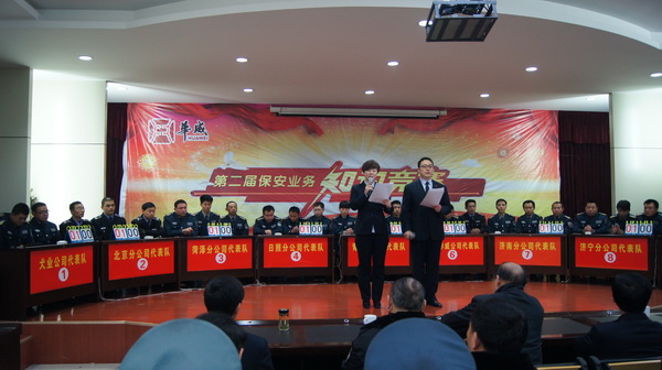 為進一步提高保安隊員綜合素質和業務技能,檢驗崗位練兵成效,為客戶提供更優質的服務,全面實現全年各項任務目標,結合公司“素質提升年”活動的開展,公司組織了此次競賽活動,競賽內容涉及《集團概況》、《保安員基礎知識》、《華威企業文化》、《時事政治及有關法律法規》等內容,每場比賽分必答、搶答、論述題三個部分。來自集團各分公司、子公司的9支代表隊共27名選手參加了比賽。決賽過程競爭激烈、高潮迭起、精彩紛呈。各代表隊以知識實力論高下、爭第一,以團結協作、默契配合提升團體形象,選手們精神飽滿、思維敏捷、沉著應答,現場觀眾踴躍參與,主持人幽默、風趣的串詞,為緊張的競賽增添了輕松活躍的氛圍,體現了員工良好的文化素質和精神風貌。集團公司董事長、總裁荀金慶、常務副總裁楊中河、黨總支副書記李曉虎、監事會主席米永友、副總裁姚彥偉等公司領導與二百多名員工觀看了比賽。