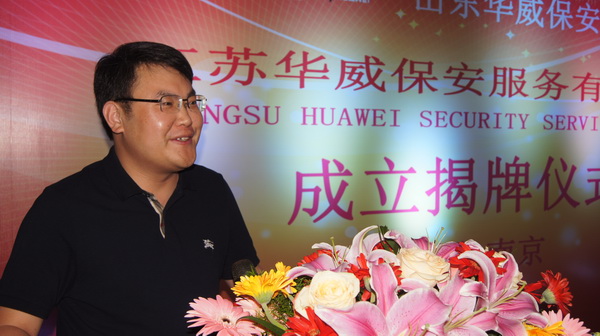 山東華威保安集團董事長、總裁荀金慶致辭,向多年來關心支持集團公司發展的各級領導和社會各屆人士表示衷心感謝。簡要介紹了公司的發展歷程,并對下步工作提出了希望和要求。他表示:“集團公司在南京成立江蘇華威公司,是為了更好的開發江蘇地區安保業務,滿足長三角地區新市場的需求,是深入貫徹集團“高端發展、轉型升級”及“走出去”戰略的又一有力舉措,江蘇公司的成立代表著華威進軍華東市場道路上又邁出了一大步。成立后的江蘇公司將借助長三角經濟帶這一新環境,采取更加符合開展地域特點的人事、用工、分配、管理新機制,形成更加有利于公司業務開拓的內部環境和運營機制,依法經營、誠信經營,為客戶提供更加專業、高效的安保服務,打響來至齊魯大地、東方圣城的華威保安品牌。”