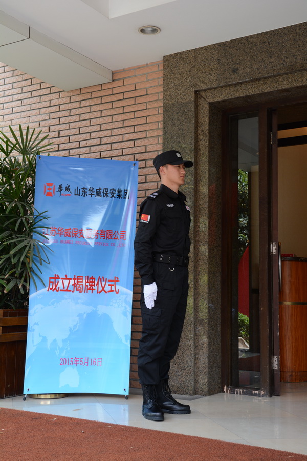 5月16日,山東華威保安集團江蘇華威保安服務有限公司在南京鼓樓區雙門樓賓館舉行開業儀式。江蘇省山東商會總會長魯宏振先生、南京市公安局保安監管大隊大隊長紀鐵軍先生、南京市公安局保安監管大隊教導員、南京市保安協會副秘書長徐雪峰先生,山東華威保安集團公司董事長、總裁荀金慶等領導出席揭牌儀式并為“江蘇華威保安服務有限公司”揭牌。