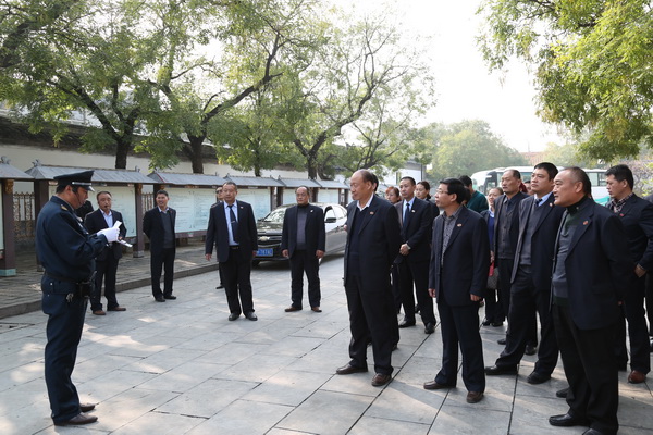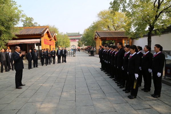 匯報結束后,與會人員驅車共同到曲阜分公司齊魯理工學院、三孔景區、曲阜市政府、濟寧學院四個基層企業文化建設示范點進行了現場觀摩。隊員們為大家演示了交接班、接待來訪人員、安檢等標準操作程序。在三孔景區,20名英姿颯爽的女保安隊員身著嶄新的制服為大家表演了隊列練習、檢票入場程序并背誦了《論語》,她們精彩的示范表演贏得了大家陣陣掌聲,同時大家對示范點的軟硬件建設都做了認真的記錄和拍照。