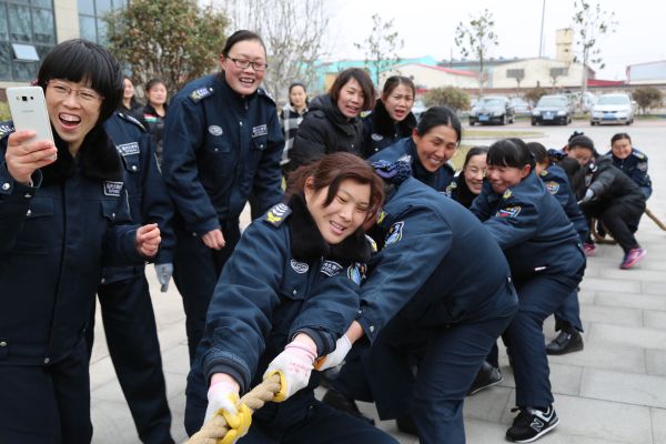 3月8日上午,集團總部辦公大樓前傳來一陣陣吶喊助威聲,這是山東華威保安集團工會為慶祝第105個“三八”國際婦女節的到來而精心組織的一場女員工拔河比賽。集團常務副總裁楊中河、黨總支副書記李曉虎、副總裁顏承國、工會主席孫凡華,總裁助理仙文、孔令東,董事會秘書趙冬梅、女工委主任邱玉華出席了活動,來至集團行管代表隊,犬業公司、駕校、安防公司、報警公司組成的經營代表隊,曲阜分公司的1至4隊,共計6支女子拔河隊伍、60名運動員參加了比賽。