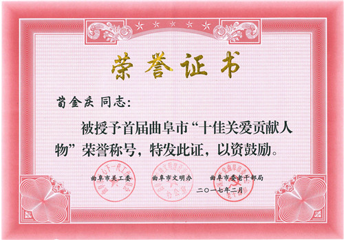 4月19日,曲阜市關心下一代工作會議在市政府召開。會議主要是深入學習貫徹上級精神,總結工作,表彰先進,安排部署當前和今后一個時期工作任務,推動我市關心下一代工作再上新臺階。表彰會上,集團公司在大力推廣和實施的“愛心雞蛋”工程中表現突出,榮獲“曲阜市關心下一代最佳工作品牌”;集團董事長、總裁荀金慶榮獲“十佳關愛貢獻人物”獎。