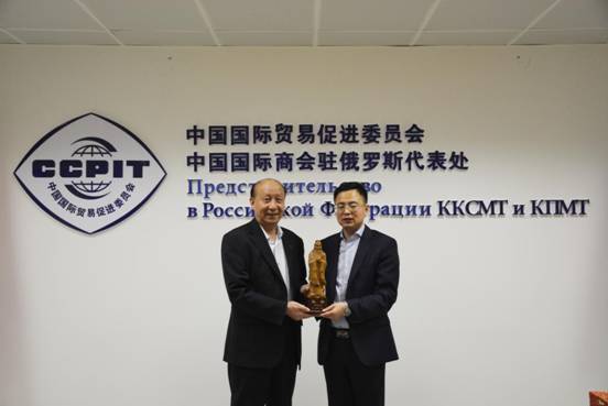董事長、總裁荀金慶一行還拜訪了中國國際貿易促進委員會、中國國際商會駐俄羅斯代表處。貿促會首席代表徐金利先生與董事長、總裁荀金慶就俄羅斯及周邊國家中資企業安保需求及安全問題進行了深度的交流、溝通。