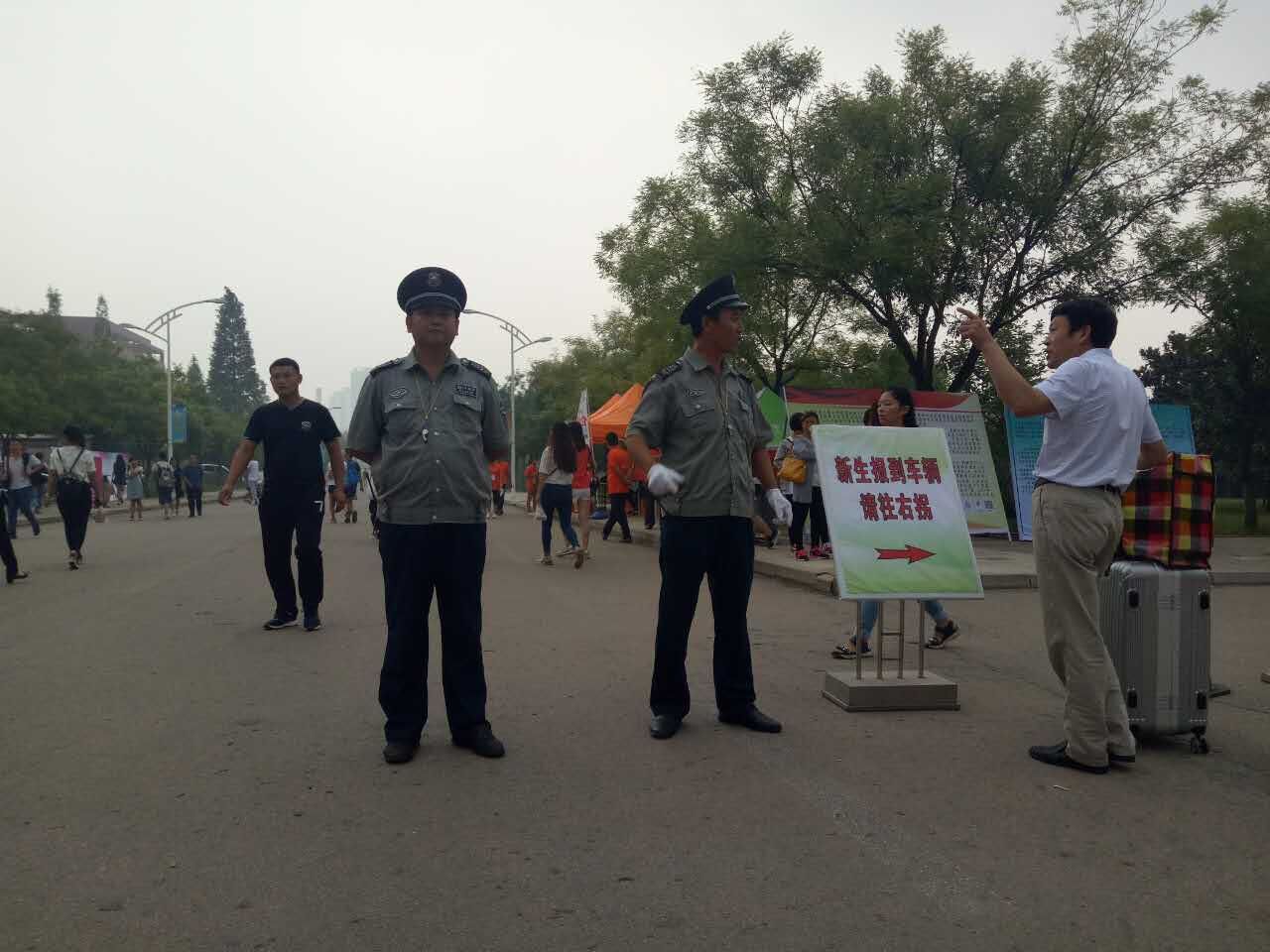 新生注冊報名現場人員密集,人流量大,大多數外地來送學生的家長都是帶車進入校區的,保安員對外來車輛進行及時疏通、引導,防止車輛堵塞校園道路,經過兩天的努力工作,特別是一些管理骨干發揚了不怕累、不怕熱的模范帶頭作用,同時也為隊員做了表率,確保了校區迎新工作的順利進行,得到了客戶單位領導的一致好評。
